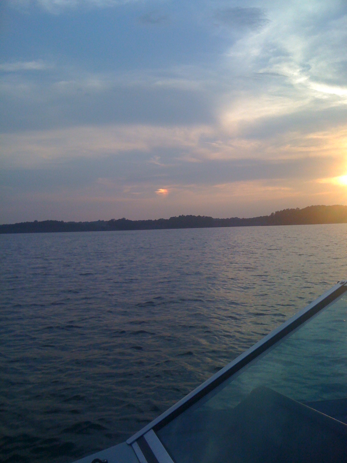 On Tuesday, we realized we were coming up on the summer solstice. We decided to celebrate the longest day of the year by taking the boat out after work. It was a beautiful evening on the lake. We stayed on the water to watch the sunset. And as we were cutting across the lake to the dam, the best spot to watch the sunset, I spotted something in the clouds.